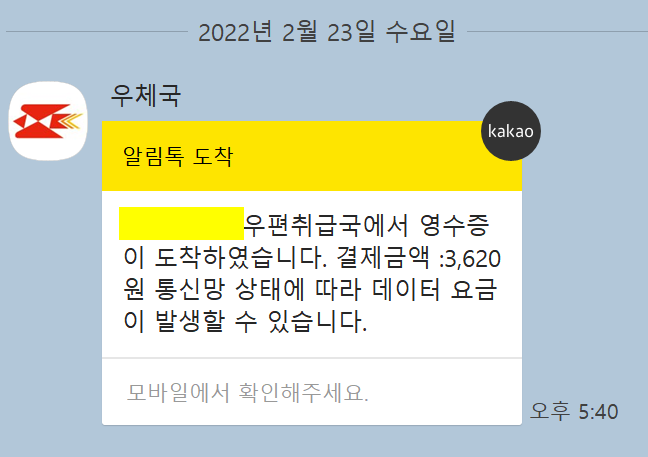 참. 혹시 모르니 등기영수증은 잘 챙겨두라고 했다. 요즘엔 우체국 영수증도 카톡으로 보내줬다.